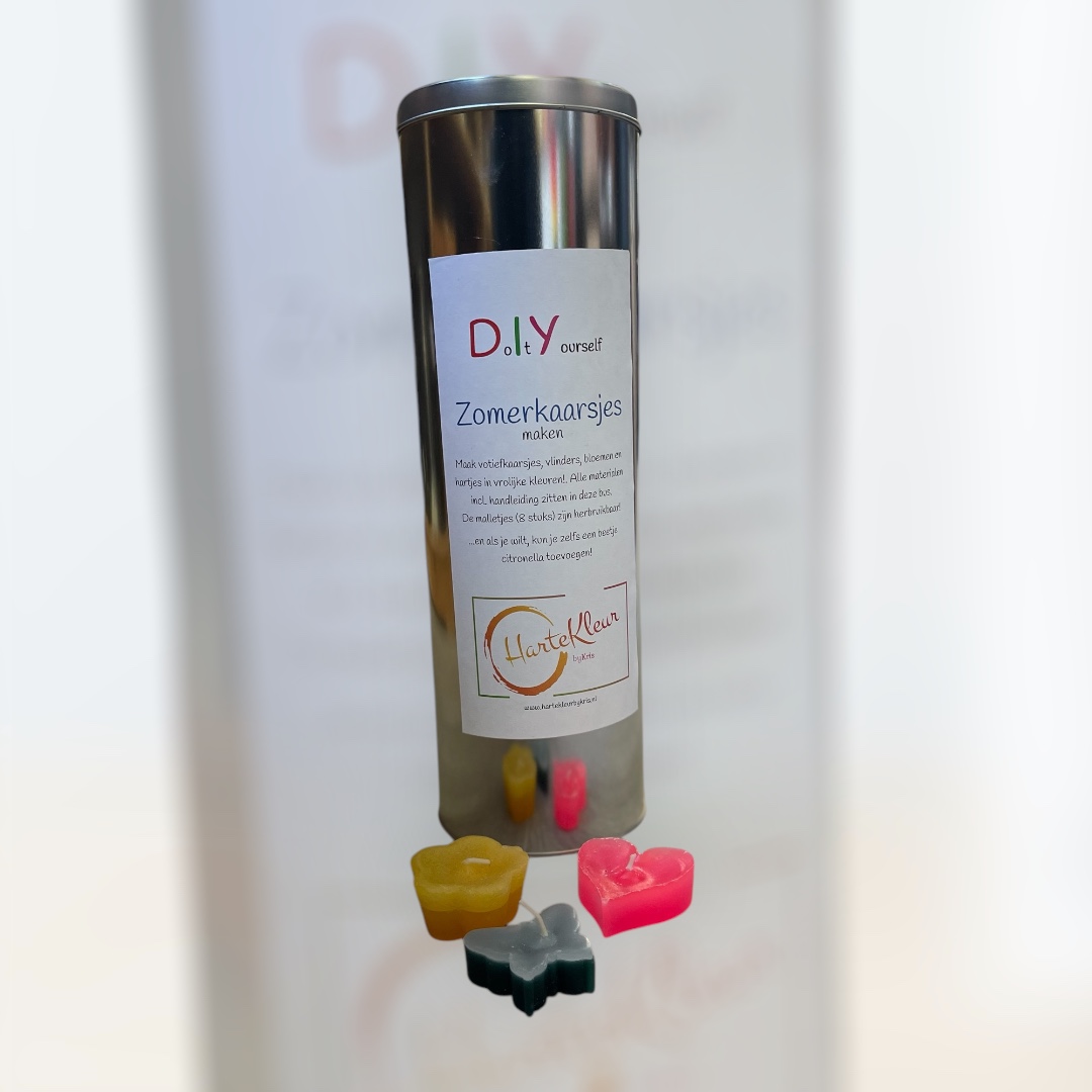 Maak leuke vormkaarsjes in leuke kleuren! In deze bus zitten alle materialen om maar liefst 24 kaarsjes te maken.