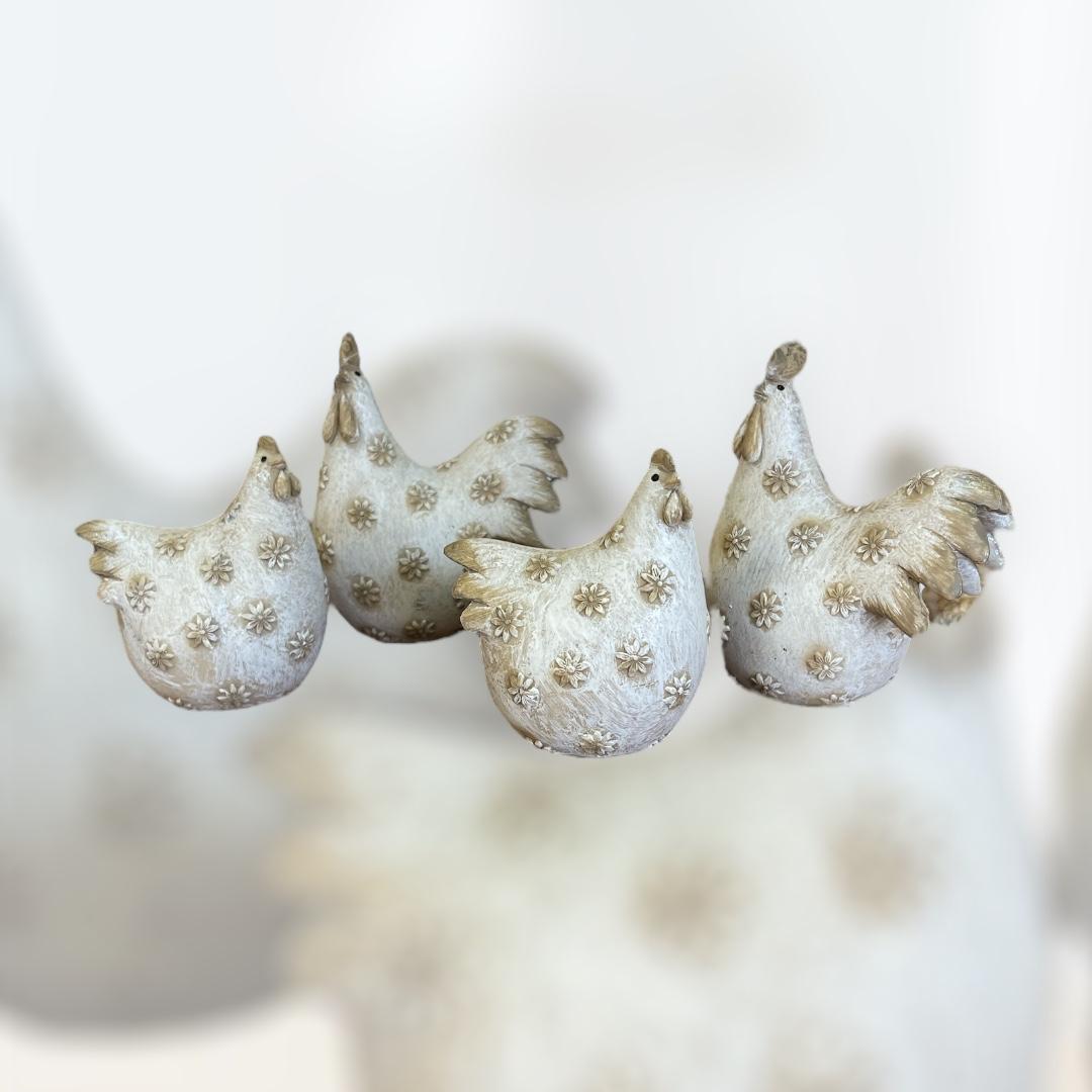 Leuk setje van een kip en een haan, gemaakt van polystone.