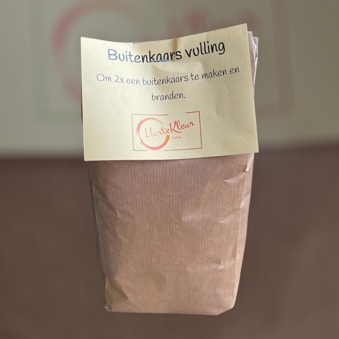 Inhoud: paraffinekorrels, 2 buitenpitten & natuurlijk een korte instructie.