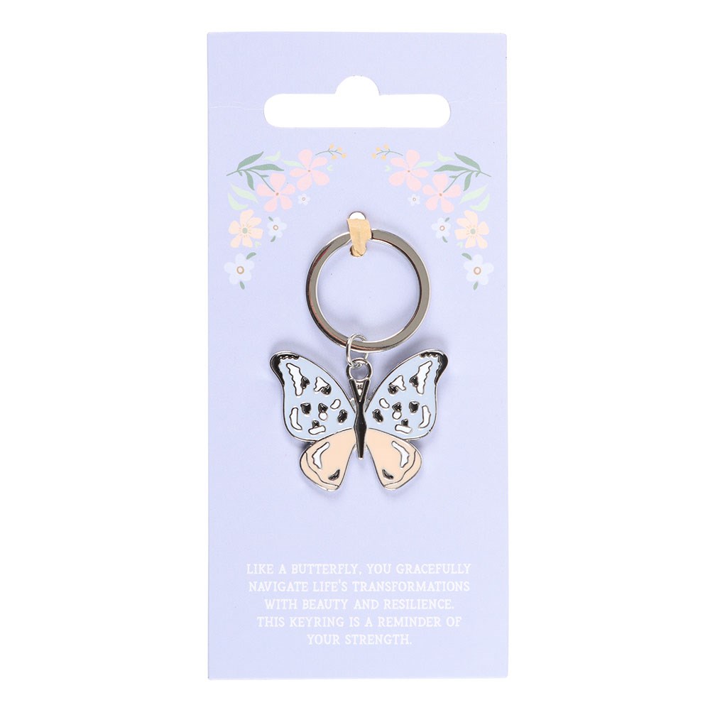 Prachtig gepresenteerd op een bijpassende steunkaart met de tekst ‘Als een vlinder navigeer je gracieus door de transformaties van het leven met schoonheid en veerkracht. Deze sleutelhanger is een herinnering aan je kracht‘.
