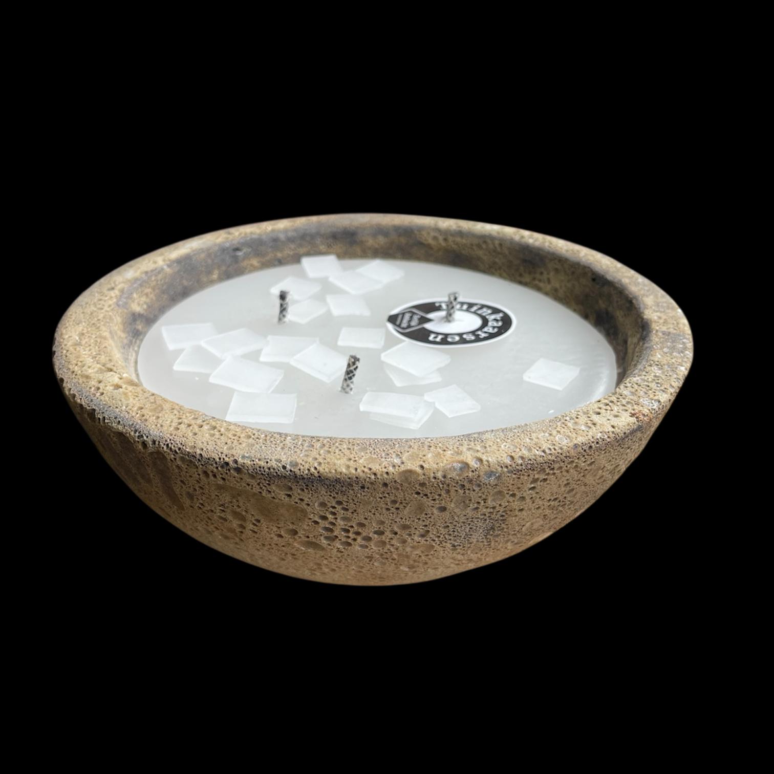 Prachtige lavasteen pot gevuld met een 3-pits kaars. Als de kaars op is, houd je een unieke (planten)pot over.