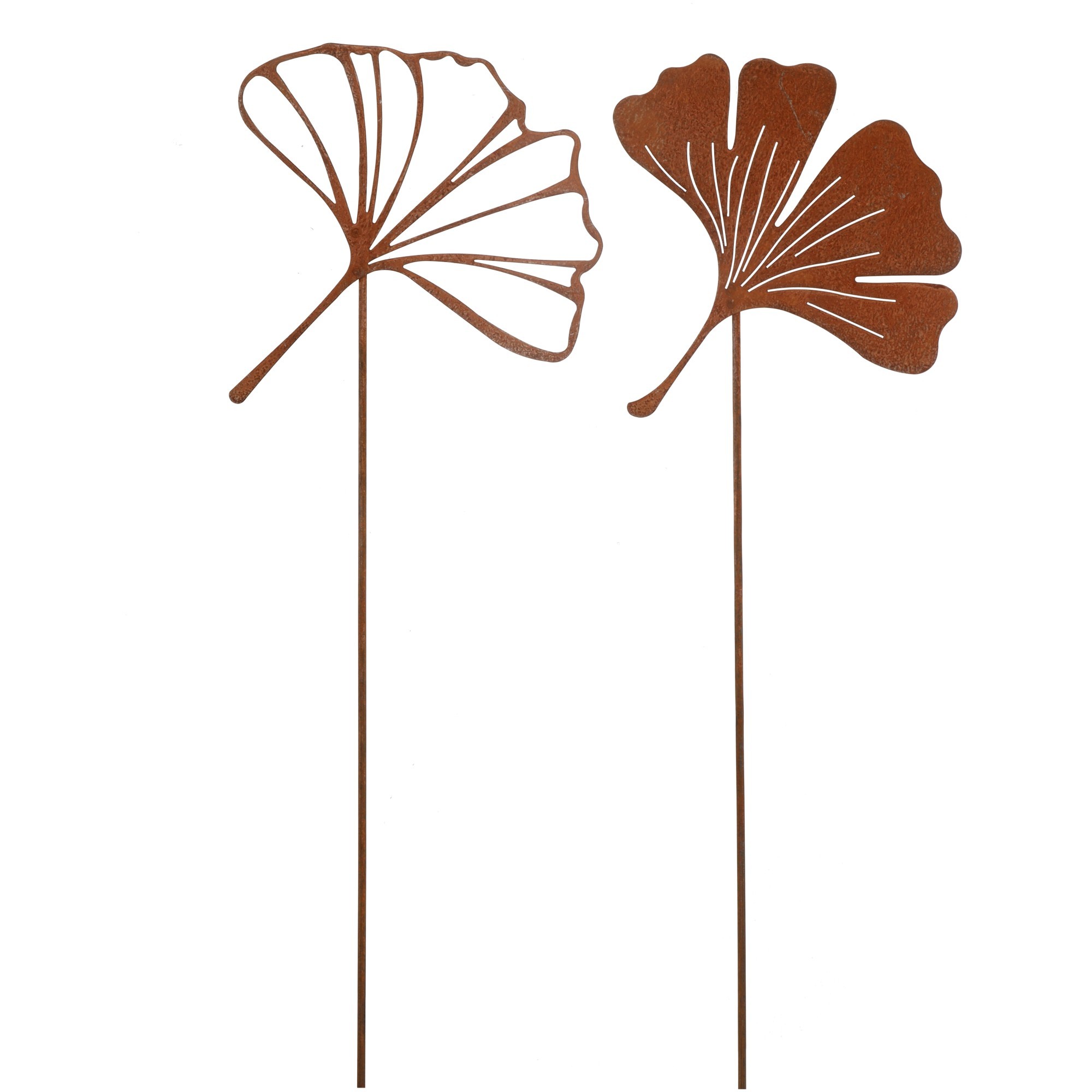 Mooie tuinsteker roest metaal in de vorm van een Ginkgoblad.
