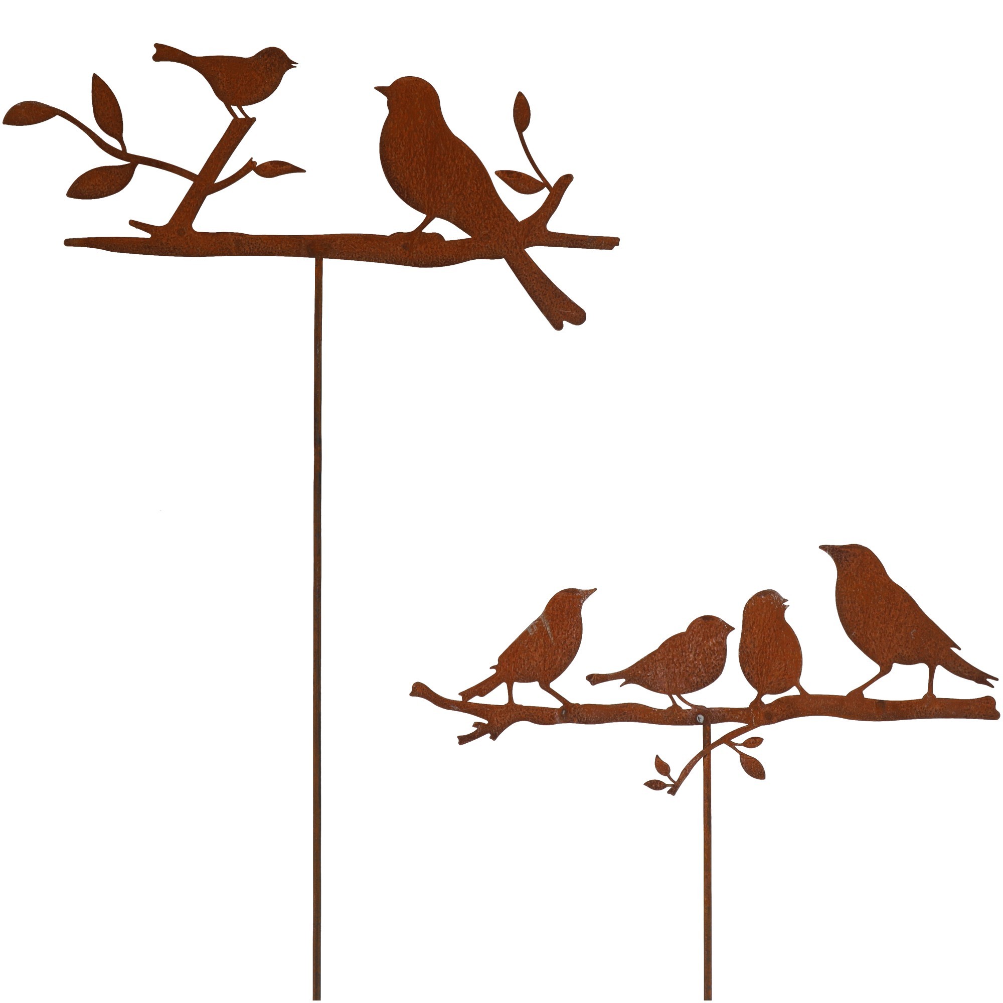 Leuke tuinsteker roest metaal met vogeltjes op een takje!