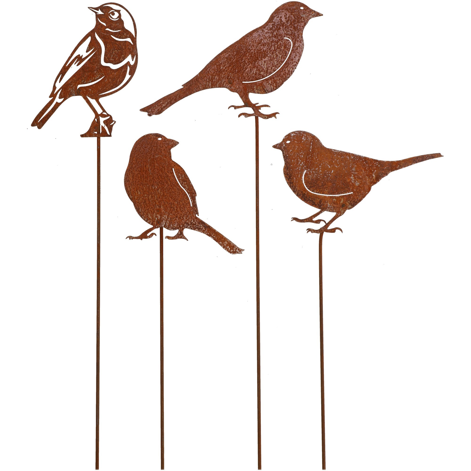 Leuke tuinsteker roest metaal in de vorm van een vogeltje.